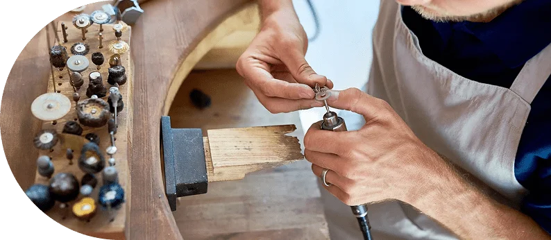 Sobald Sie die perfekten Ringe gefunden haben, beginnt die Fertigung. Per Hand wird der Ring in unserer eigenen Manufaktur nach Ihren Wünschen hergestellt und angepasst. Im Regelfall dauert die Produktion zwischen vier und sechs Wochen. Sollten Sie den Ring dringender benötigen, machen wir aber auch das möglich.